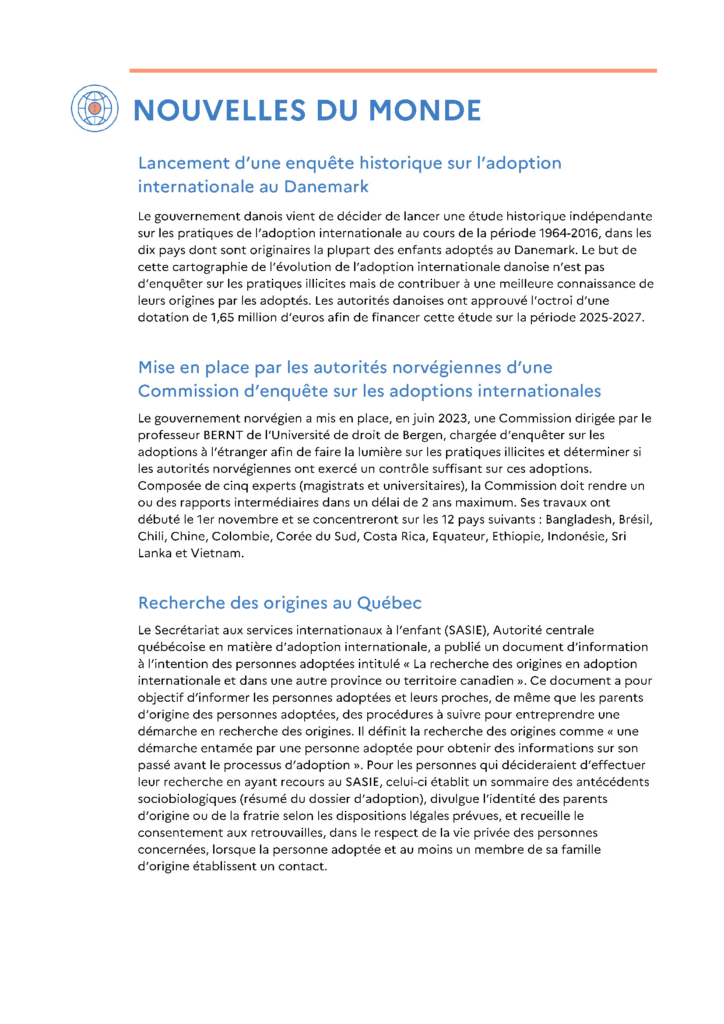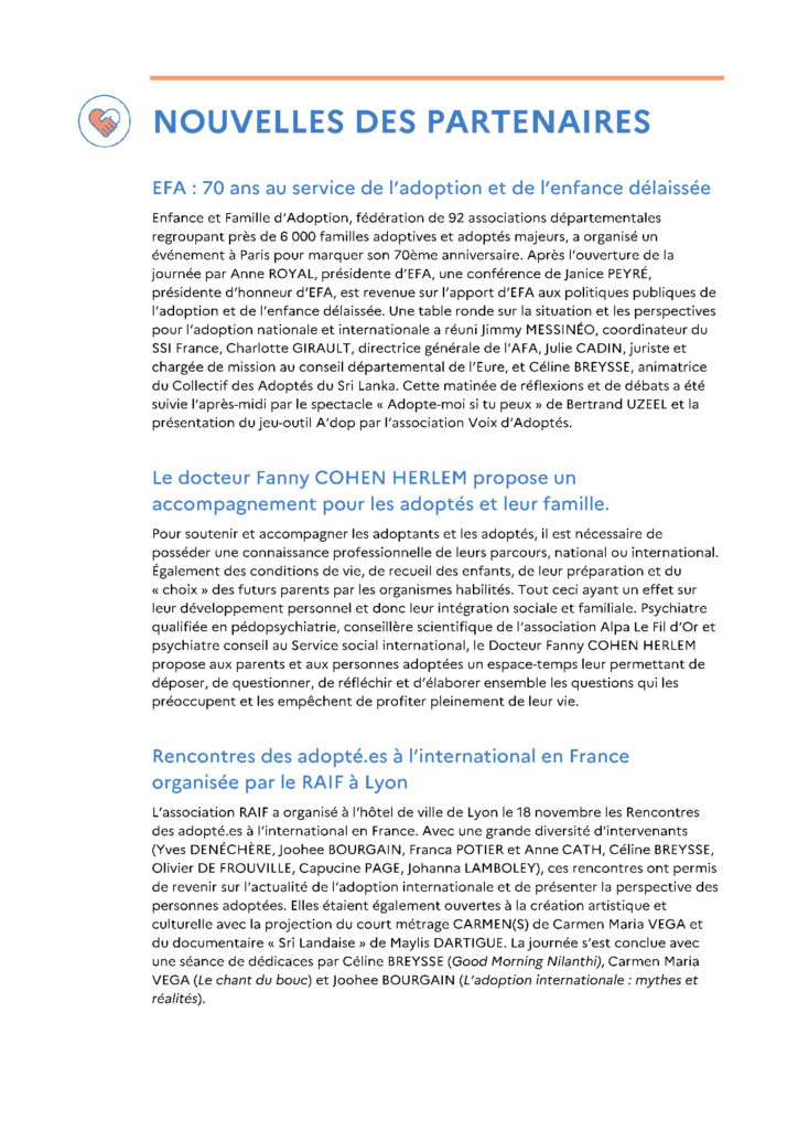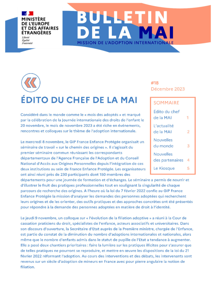 Considéré dans le monde comme le « mois des adoptés » et marqué par la célébration de la Journée internationale des droits de l’enfant le 20 novembre, le mois de novembre 2023 a été riche en événements, rencontres et colloques sur le thème de l’adoption internationale.