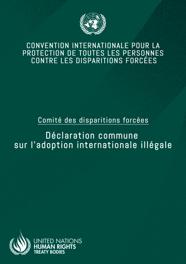 Le 29 septembre 2022, le Comité des Nations Unies (ONU) a décidé d’adopter une déclaration conjointe avec le Comité sur les disparitions forcées, le Groupe de travail sur les disparitions forcées ou involontaires, le Rapporteur spécial sur la promotion de la vérité, de la justice, de la réparation et des garanties de non-répétition en matière d’adoptions internationales illégales.